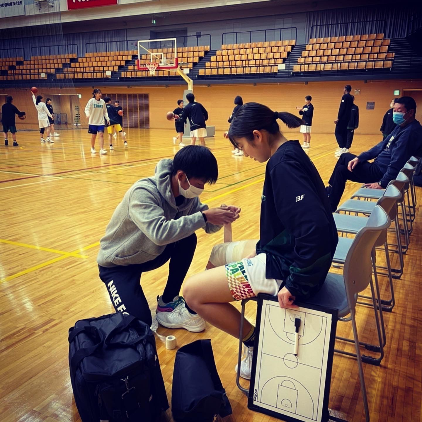 女子チームをサポートしている天野トレーナーはバスケの公式戦帯同は初めて。