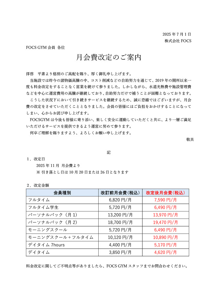 【重要】月会費改定のご案内