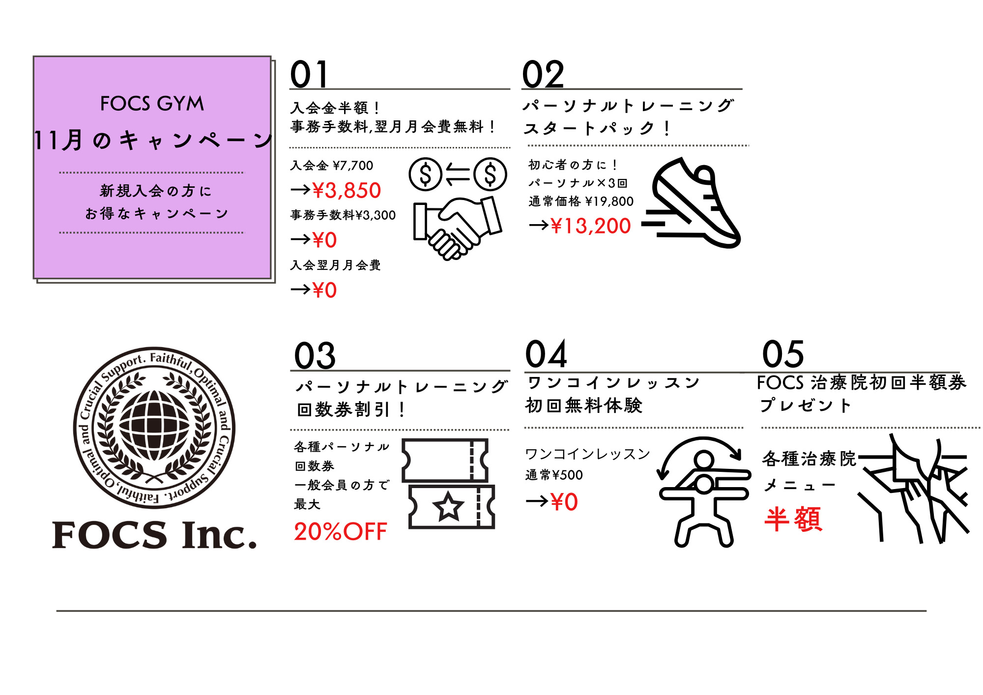FOCS GYM11月の新規入会キャンペーンをお知らせいたします!